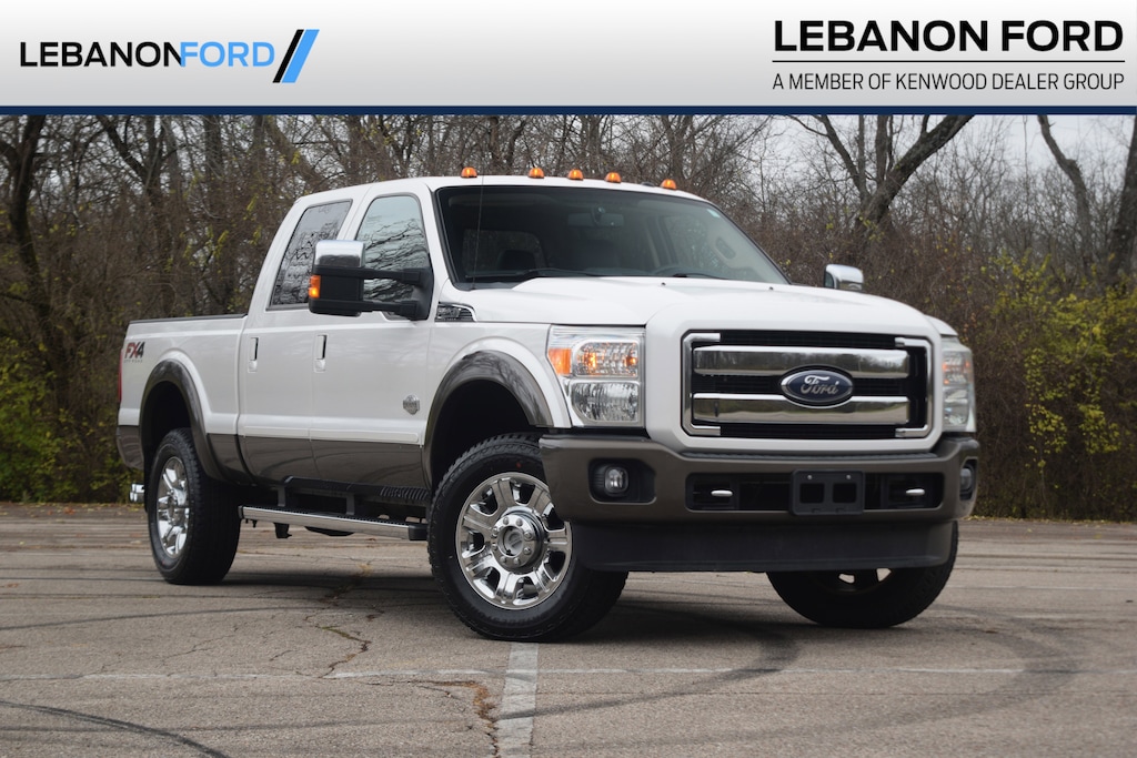 THIS CAR ALSO INCLUDES THE FOLLOWING FEATURES AND OPTIONS:5th Wheel/Gooseneck Hitch Prep Package, FX4 Off-Road Package, GVWR: 10,000 lb Payload Package, King Ranch w/Chrome Package (Memory Power Adjustable Pedals, PowerScope Trailer-Tow Mirrors, Unique King Ranch Leather 40/Console/40 Front Seats, and Voice Activated Navigation), Order Code 608A, Snow Plow Prep Package, 10 Speakers, 20 Chrome Clad Cast Aluminum Wheels, 3.73 Axle Ratio, 4-Wheel Disc Brakes, ABS brakes, Adjustable pedals, Air Conditioning, Alloy wheels, AM/FM radio: SiriusXM, Auto-dimming Rear-View mirror, Automatic temperature control, Brake assist, Bumpers: chrome, CD player, Compass, Delay-off headlights, Driver door bin, Driver vanity mirror, Dual front impact airbags, Dual front side impact airbags, Electronic Locking w/3.55 Axle Ratio, Electronic Stability Control, Engine Block Heater, Exterior Parking Camera Rear, Extra Heavy-Duty 200-Amp Alternator, Front & Rear Splash Guards/Mud Flaps, Front anti-roll bar, Front Bucket Seats, Front Center Armrest, Front dual zone A/C, Front fog lights, Front reading lights, Fully automatic headlights, Heated door mirrors, Heated Rear Seats, Illuminated entry, Leather steering wheel, Low tire pressure warning, Outside temperature display, Overhead airbag, Overhead console, Panic alarm, Passenger door bin, Passenger vanity mirror, Power door mirrors, Power driver seat, Power Moonroof, Power passenger seat, Power steering, Power windows, Premium audio system: Sony, Premium Leather Seating Surfaces 40/Console/40, Radio data system, Radio: Premium Sony Audio w/Single CD, Rapid-Heat Supplemental Cab Heater, Rear Parking Sensors, Rear reading lights, Rear seat center armrest, Rear step bumper, Rear window defroster, Remote keyless entry, Roof Marker/Clearance Lamps, Security system, SiriusXM Satellite Radio, Speed control, Split folding rear seat, Steering wheel mounted audio controls, SYNC w/MyFord Touch & SYNC Services, Tachometer, Tailgate Step & Handle, Telescoping steering wheel, Tilt steering wheel, Traction control, Trip computer, Turn signal indicator mirrors, Upfitter Switches (4), Variably intermittent wipers, and Wheel Well Liner (LPO)