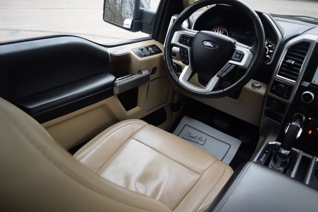 THIS CAR ALSO INCLUDES THE FOLLOWING FEATURES AND OPTIONS:Equipment Group 502A Luxury (110V/400W Outlet, 2nd Row Heated Seats, Auto High Beam w/Rain-Sensing Windshield Wipers, BLIS Blind Spot Information System, Heated Steering Wheel, Leather-Trimmed Bucket Seats, LED Side-Mirror Spotlights, Power Tilt/Telescoping Steering Column w/Memory, Quad Beam LED Headlamps & Taillamps, Radio: Sony Single CD w/HD & SiriusXM Satellite, Remote Start System w/Remote Tailgate Release, Reverse Sensing System, SYNC Connect, Universal Garage Door Opener, and Voice-Activated Navigation), GVWR: 6,500 lbs Payload Package, Lariat Chrome Appearance Package (Chrome 3-Bar Style Grille w/Chrome Surround, Chrome Angular Step Bars, Chrome Door & Tailgate Handles w/Body-Color Bezel, Chrome Skull Caps on Exterior Mirrors, Single-Tip Chrome Exhaust, and Wheels: 18 Chrome-Like PVD), Max Trailer Tow Package (Auxiliary Transmission Oil Cooler, Class IV Trailer Hitch Receiver, Electronic Locking w/3.55 Axle Ratio, Engine Oil Cooler, Extended Range 36 Gallon Fuel Tank, Integrated Trailer Brake Controller, Pro Trailer Backup Assist, and Upgraded Front Stabilizer Bar), 18 Machined-Aluminum Wheels, 3.55 Axle Ratio, 4-Wheel Disc Brakes, 7 Speakers, ABS brakes, Adjustable pedals, Air Conditioning, Alloy wheels, AM/FM radio: SiriusXM, Auto-dimming door mirrors, Auto-dimming Rear-View mirror, Automatic temperature control, Brake assist, Bumpers: chrome, CD player, Compass, Delay-off headlights, Driver door bin, Driver vanity mirror, Dual front impact airbags, Dual front side impact airbags, Electronic Stability Control, Exterior Parking Camera Rear, Front anti-roll bar, Front Center Armrest w/Storage, Front dual zone A/C, Front fog lights, Front reading lights, Front wheel independent suspension, Fully automatic headlights, Heated door mirrors, Heated front seats, Illuminated entry, Leather-Trimmed 40/20/40 Front Seat, Low tire pressure warning, Memory seat, Occupant sensing airbag, Outside temperature display, Overhead airbag, Overhead console, Panic alarm, Passenger door bin, Passenger vanity mirror, Pedal memory, Power door mirrors, Power driver seat, Power Glass Sideview Mirr w/Body-Color Skull Caps, Power passenger seat, Power steering, Power windows, Radio data system, Radio: Single-CD w/SiriusXM Satellite, Rear reading lights, Rear seat center armrest, Rear step bumper, Rear window defroster, Remote keyless entry, Security system, Speed control, Speed-sensing steering, Split folding rear seat, Steering wheel mounted audio controls, SYNC 3, Tachometer, Telescoping steering wheel, Tilt steering wheel, Traction control, Trip computer, Turn signal indicator mirrors, Twin Panel Moonroof, Variably intermittent wipers, Ventilated front seats, Voltmeter, and Wheels: 20 Chrome-Like PVD.