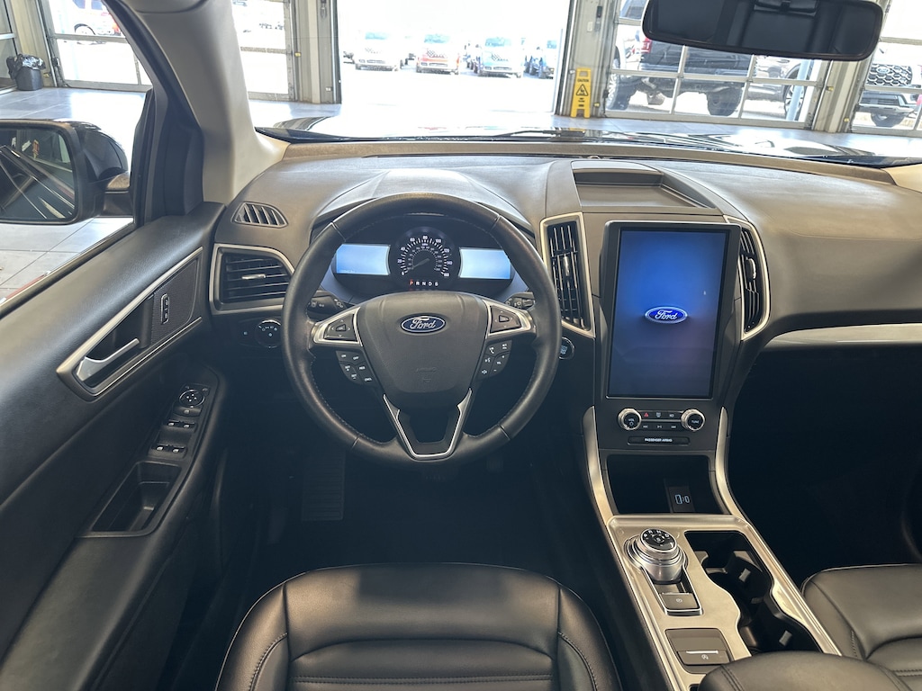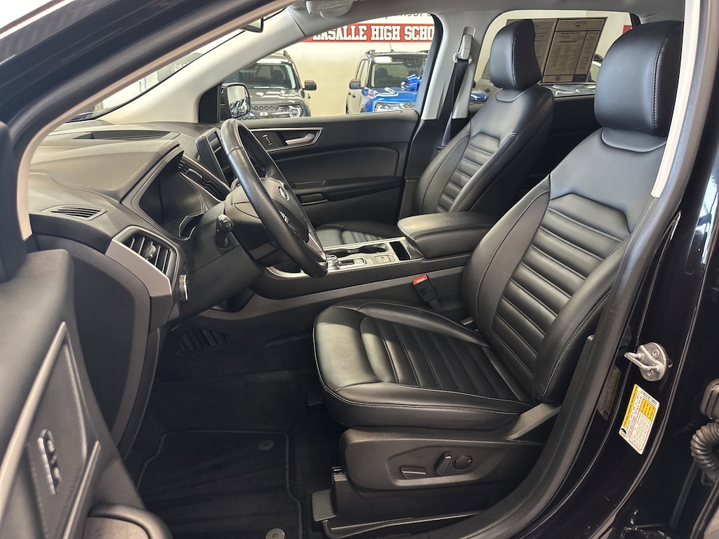 THIS VEHICLE ALSO HAS THE FOLLOWING OPTIONS AND FEATURES:Convenience Package (110V/150W AC Power Outlet, Fog Lamps w/Iconic Silver Bezel, Perimeter Alarm, Power Liftgate, Remote Start System, Universal Garage Door Opener (UGDO), and Wireless Charging Pad), Equipment Group 201A, Edge SEL, 4D Sport Utility, AWD, ActiveX Seating Material Heated Bucket Seats, Auto High-beam Headlights, Automatic temperature control, Electronic Stability Control, FordPass Connect, Radio: AM/FM Stereo/MP3 Capable, Rear Parking Sensors, SiriusXM w/360L, SYNC 4A w/Enhanced Voice Recognition, Wheels: 18" Sparkle Silver-Painted Aluminum, 3.80 Axle Ratio, 4-Wheel Disc Brakes, 6 Speakers, ABS brakes, Air Conditioning, Alloy wheels, AM/FM radio: SiriusXM with 360L, Auto-dimming Rear-View mirror, Brake assist, Bumpers: body-color, Compass, Delay-off headlights, Driver door bin, Driver vanity mirror, Dual front impact airbags, Dual front side impact airbags, Emergency communication system: SYNC 4 911 Assist, Four wheel independent suspension, Front anti-roll bar, Front Bucket Seats, Front Center Armrest w/Storage, Front dual zone A/C, Front reading lights, Fully automatic headlights, Heated door mirrors, Heated front seats, Illuminated entry, Knee airbag, Leather steering wheel, Leather-Wrapped Steering Wheel, Low tire pressure warning, Occupant sensing airbag, Outside temperature display, Overhead airbag, Overhead console, Panic alarm, Passenger door bin, Passenger vanity mirror, Power door mirrors, Power driver seat, Power passenger seat, Power steering, Power windows, Rear anti-roll bar, Rear reading lights, Rear seat center armrest, Rear window defroster, Rear window wiper, Remote keyless entry, Speed control, Speed-Sensitive Wipers, Split folding rear seat, Spoiler, Steering wheel mounted audio controls, Tachometer, Telescoping steering wheel, Tilt steering wheel, Traction control, Trip computer, and Variably intermittent wipers.