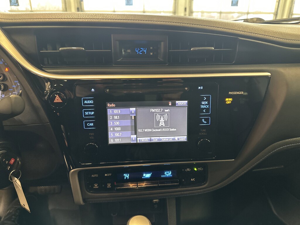 THIS VEHICLE ALSO HAS THE FOLLOWING OPTIONS AND FEATURES:Corolla SE, 4D Sedan, FWD, Black w/SofTex Leather Seat Trim, Auto High-beam Headlights, CD player, Electronic Stability Control, Exterior Parking Camera Rear, Radio data system, Wheels: 17" x 7.0" Machined Alloy, 4-Wheel Disc Brakes, 6 Speakers, ABS brakes, Air Conditioning, Alloy wheels, Automatic temperature control, Brake assist, Bumpers: body-color, Delay-off headlights, Driver door bin, Driver vanity mirror, Dual front impact airbags, Dual front side impact airbags, Fabric Seat Trim w/SofTex, Front anti-roll bar, Front Bucket Seats, Front Center Armrest w/Storage, Front reading lights, Front Sport Bucket Seats, Front wheel independent suspension, Fully automatic headlights, Heated door mirrors, Illuminated entry, Knee airbag, Leather steering wheel, Low tire pressure warning, Occupant sensing airbag, Outside temperature display, Overhead airbag, Panic alarm, Passenger door bin, Passenger vanity mirror, Power door mirrors, Power steering, Power windows, Rear anti-roll bar, Rear seat center armrest, Rear window defroster, Remote keyless entry, Speed control, Speed-sensing steering, Split folding rear seat, Spoiler, Steering wheel mounted audio controls, Tachometer, Telescoping steering wheel, Tilt steering wheel, Traction control, Trip computer, Turn signal indicator mirrors, and Variably intermittent wipers.